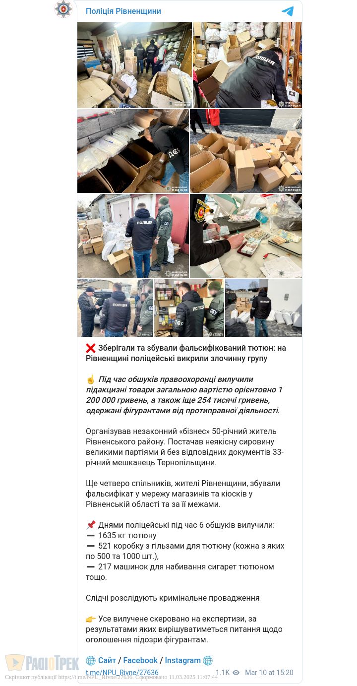 Тютюну на 1,2 млн грн вилучили під час обшуків на Рівненщині: «бізнесменам» загрожує в'язниця
