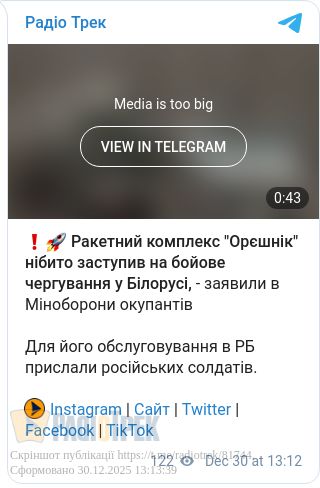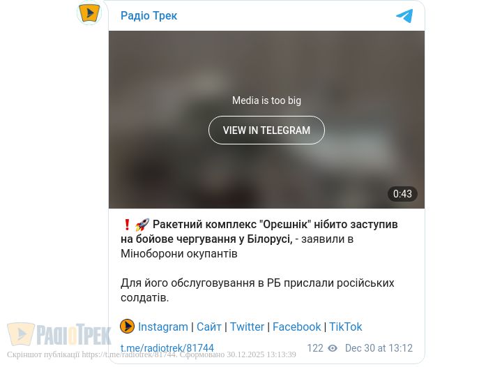 Раніше, 18 грудня, Олександр Лукашенко повідомив, що комплекс уже перебуває «на озброєнні Білорусі», назвавши його нібито «стримувальним фактором».