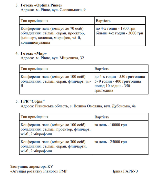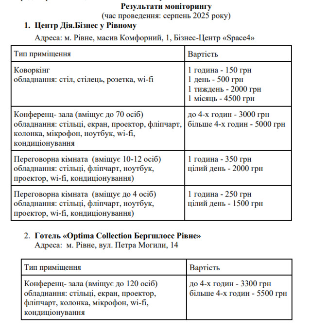 Ціни визначили за результатами моніторингу вартості послуг у місцевих готелях і ресторанних комплексах.