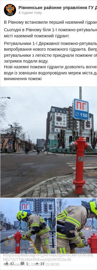Сьогодні в Рівному біля 1-ї пожежно-рятувальної частини встановили перший у місті наземний пожежний гідрант.