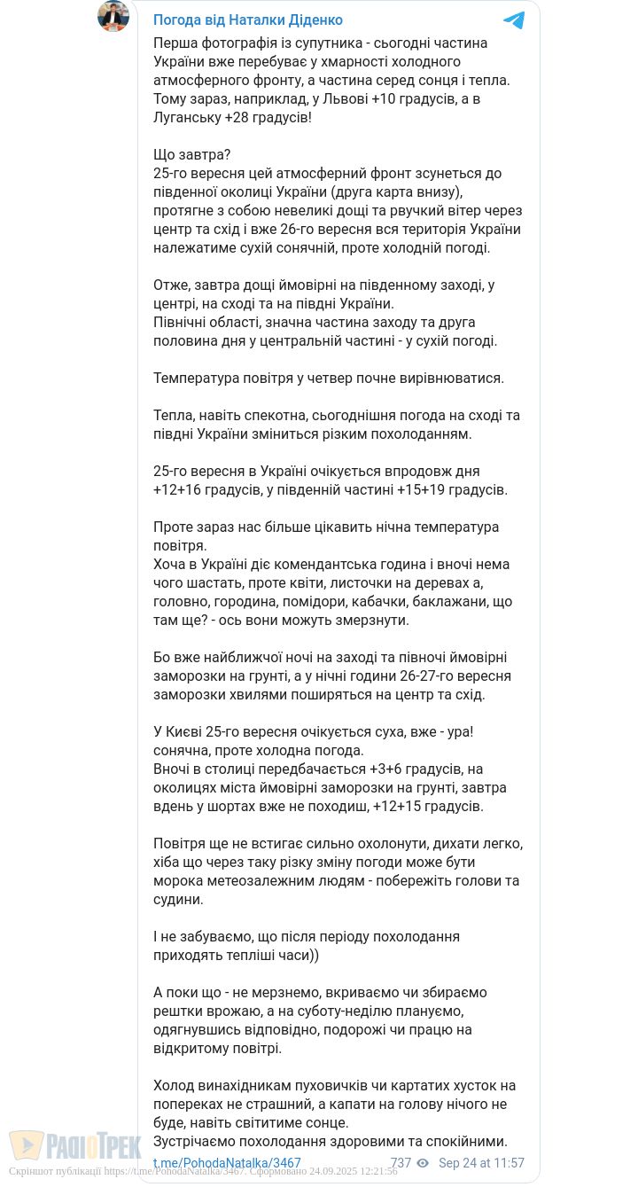 У двох частинах України прогнозують заморозки: синоптики попередили про зміну погоди з 25 вересня
