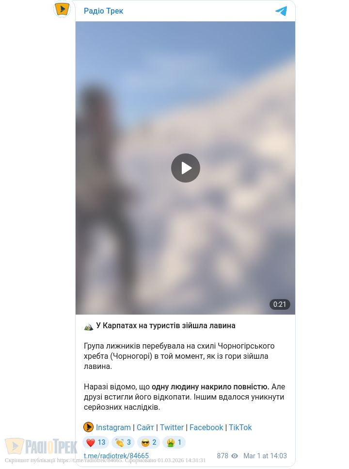 Одного з туристів лавина накрила повністю. На щастя, друзі оперативно зреагували та змогли відкопати його зі снігу.
