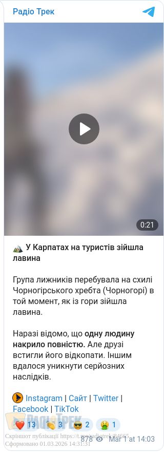 Фахівці вкотре закликають туристів та любителів зимового відпочинку бути обережними в горах, стежити за погодними умовами та враховувати лавинну небезпеку перед виходом на схили.