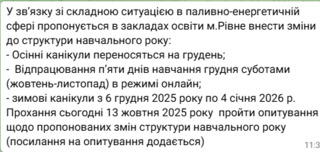 Щодо цього у батьківських чатах провели опитування, його результати поки не оприлюднили.