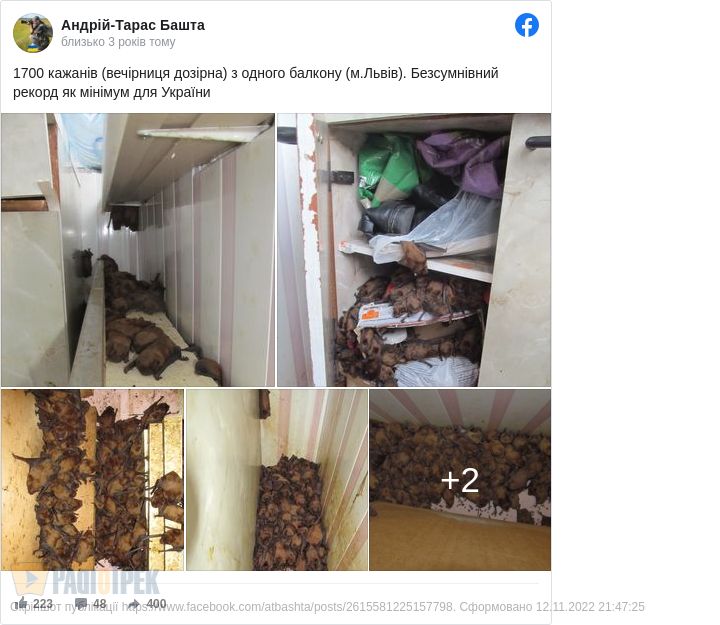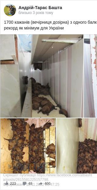 Колись ми писали про аналогічну ситуацію у Львові, де на утепленому балконі знайшли собі прихисток понад 1500 кажані породи «вечірниця дозірна».
