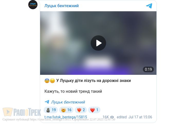 У Луцьку підлітки знімають відео, де зависають на дорожніх знаках у «позі ангела», тримаючись руками назад. Це небезпечно і може закінчитись травмами.