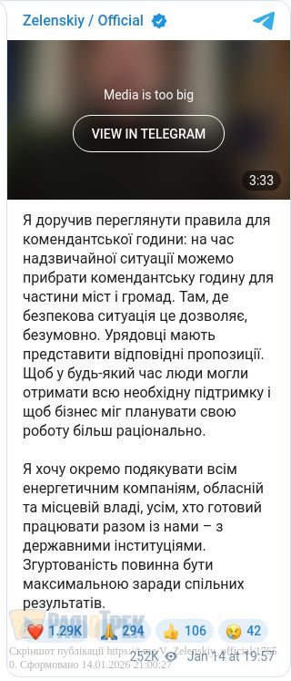 Окремо уряду доручено переглянути правила комендантської години на період сильних морозів. Причина — необхідність дати людям більше можливостей: