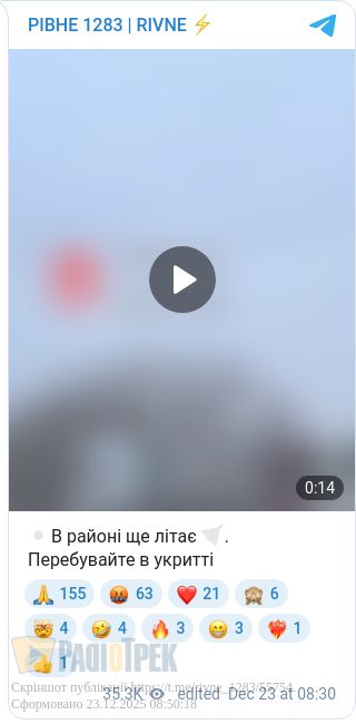 8-30. Повітряна тривога все ще триває на Рівненщині.