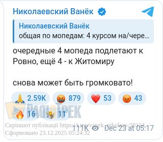 Цієї ночі можливо атакуватимуть енергетичну та залізничну інфраструктуру в Рівненській, Житомирській, Тернопольській, Львівській, Івано-Франківській та Волинській областях, Черкаській та Київській областях. Про це пишуть монітори.
