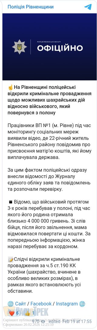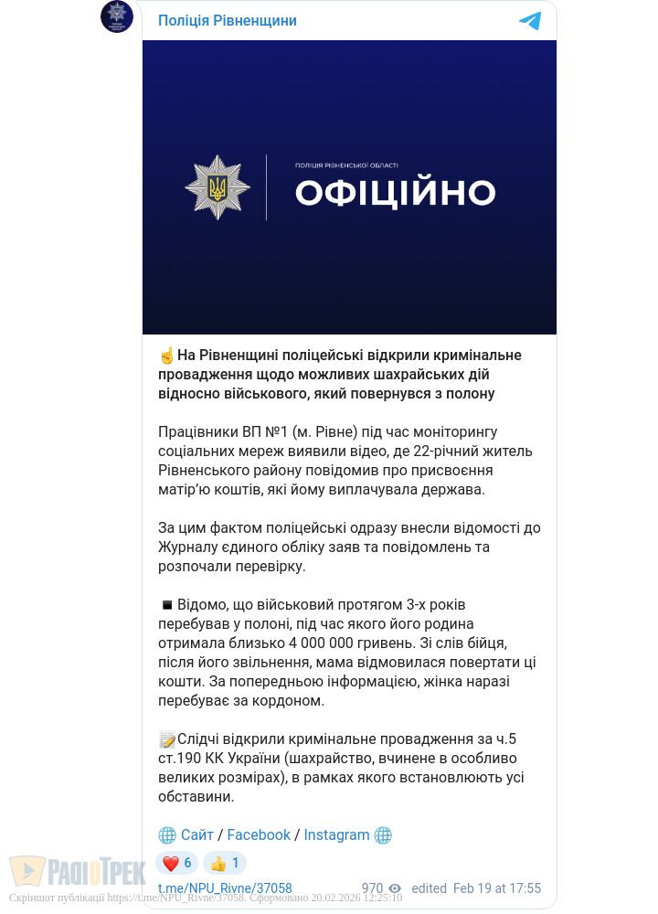 Поліцейські Рівненщини відкрили кримінальне провадження за ч.5 ст.190 КК України (шахрайство у великих розмірах). Під час перевірки встановлюють усі обставини, зокрема, що мати наразі перебуває за кордоном.