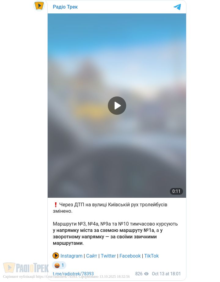 У Рівному на вулиці Київській сталася ДТП . Через це рух тролейбусів змінили.