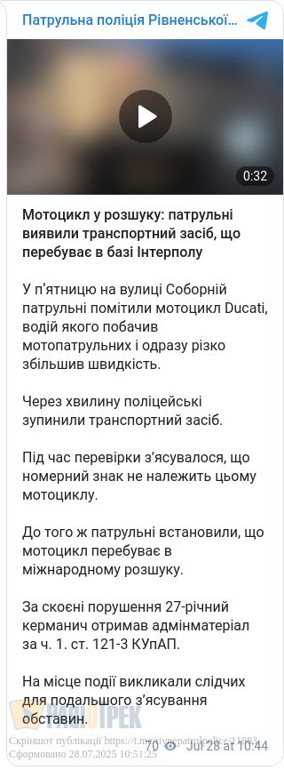 До того ж патрульні встановили, що мотоцикл перебуває в міжнародному розшуку.