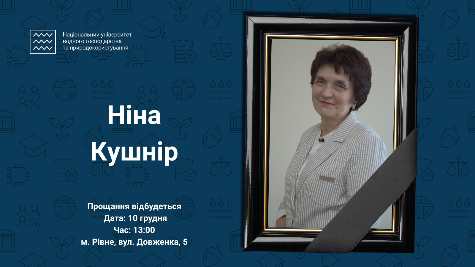 9 грудня 2025 року після тяжкої хвороби померла завідувачка кафедри економіки підприємства та міжнародного бізнесу НУВГП, кандидатка економічних наук, професорка Ніна Борисівна Кушнір.