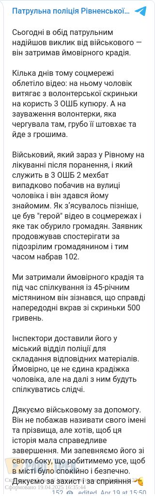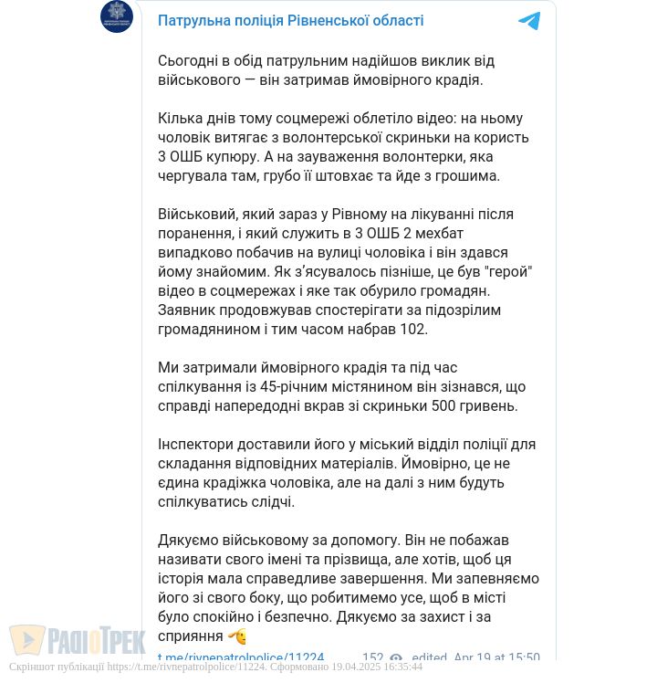 «Героя» відео, де обкрадають волонтерську скриньку, спіймали у Рівному.