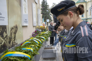 Десятки людей поклали квіти до Дошки Пам’яті Героїв Небесної Сотні та Героїв загиблих в зоні АТО біля Свято-Воскресенського кафедрального Собору.