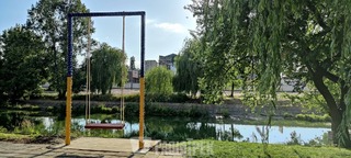 На Набережній з’явилася нова й доволі велика гойдалка. Її встановили на березі Усті між вулицями Сагайдачного та Пересопницької.