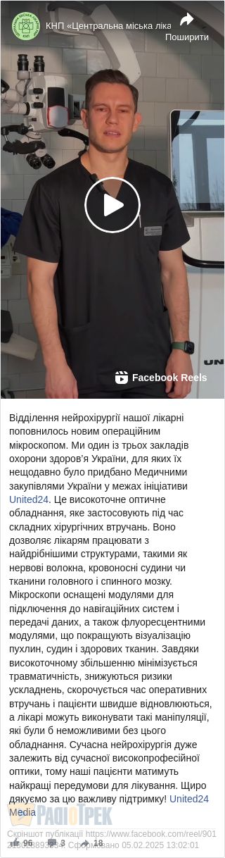 Центральна міська лікарня Рівного отримала унікальне обладнання — операційний мікроскоп «Carl Zeiss Tivato 700». Його використовуватимуть спеціалісти відділення нейрохірургії.