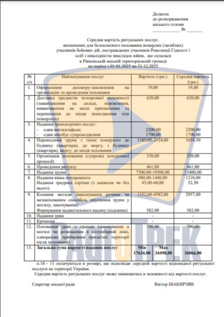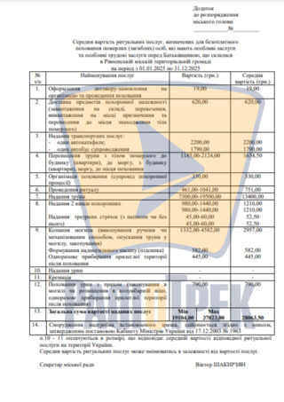 У розпорядженні міського голови йдеться, що ціна поховання може змінитися, залежно від вартості послуги, але попередньо цими розрахунками користуватимуться впродовж усього 2025 року.