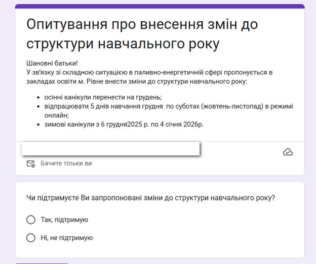 Для школярів Рівного можуть змінити графік канікул. У батьківських чатах поширили опитування щодо перенесення осінніх канікул на грудень.