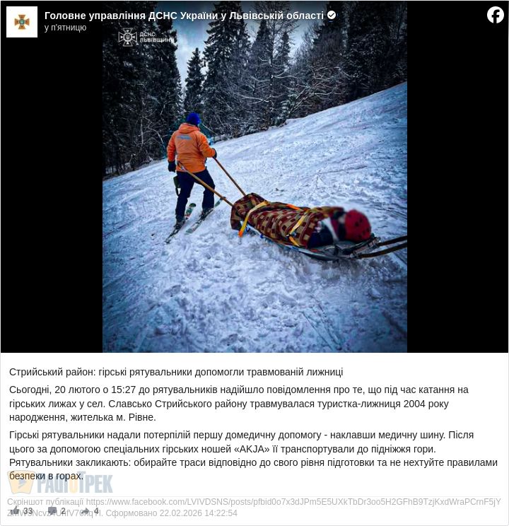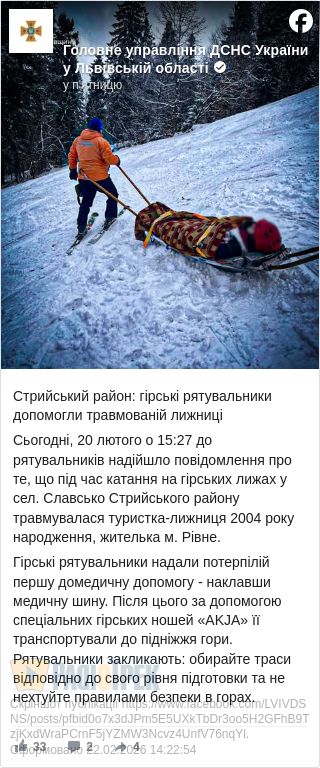 У селищі Славсько Стрийського району 20 лютого травмувалася туристка з Рівного під час катання на гірських лижах.