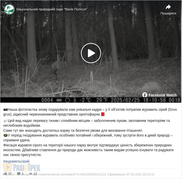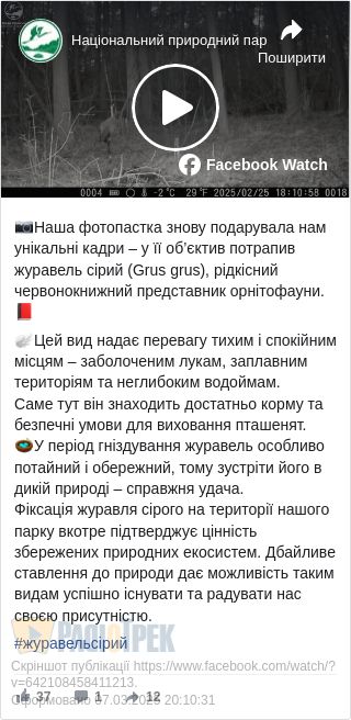 Фахівці зазначають, що поява журавля на території національного парку свідчить про важливість збереження природних екосистем. Завдяки дбайливому ставленню до природи такі рідкісні види мають змогу існувати та радувати своєю присутністю.