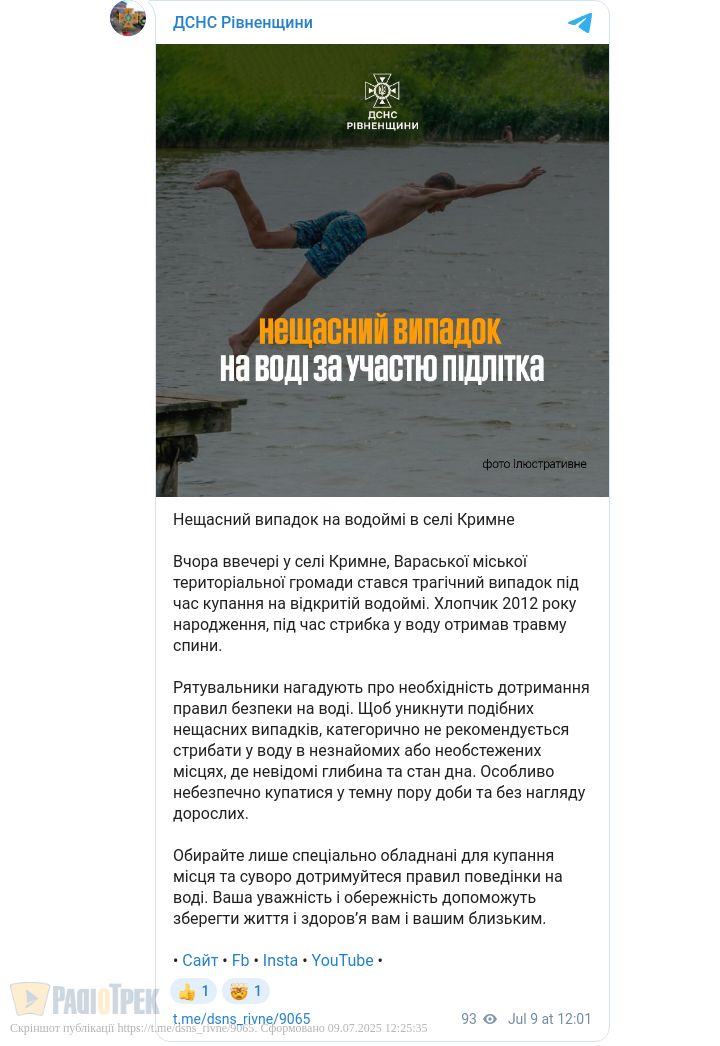 Нещасний випадок напередодні стався у селі Кримне Вараського району, що на півночі Рівненщини.