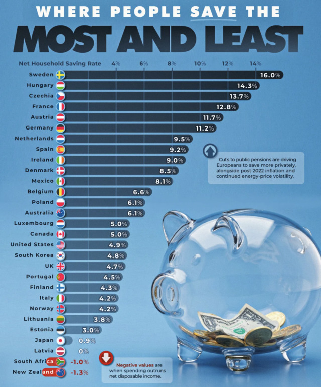 За даними Організація економічного співробітництва та розвитку, є країни, де звичка заощаджувати — майже фінансова культура.