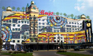 У спільноті «Типове Рівне» з’явилася цікава фотографія готелю «Мир». Її родзинка – яскраві кольори та малюнок на весь фасад. А ще на даху ростуть дерева і встановлені куполи.