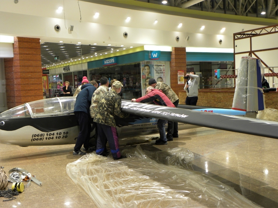 У ніч на 11-те лютого інструктори та працівники Рівненського авіаційного клубу встановили в «Екваторі» планер.