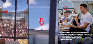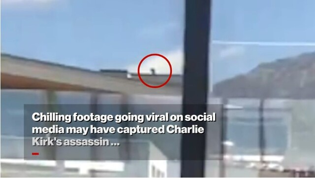 На цих кадрах він утікає по даху будівлі -- навпроти того місця, де виступав Чарльз Кірк: