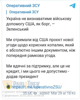 Україна не визнає військову допомогу США, як борг, — Зеленський дав Трампу відкоша?