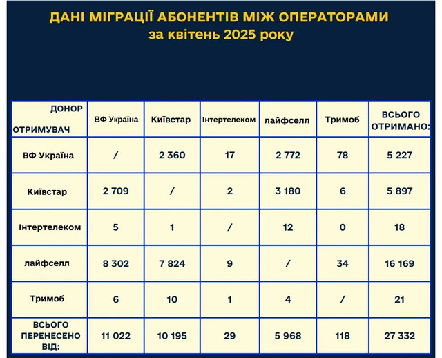 У квітні українці провели 27 332 перенесення мобільних номерів з одного оператора на інший (функція MNP).