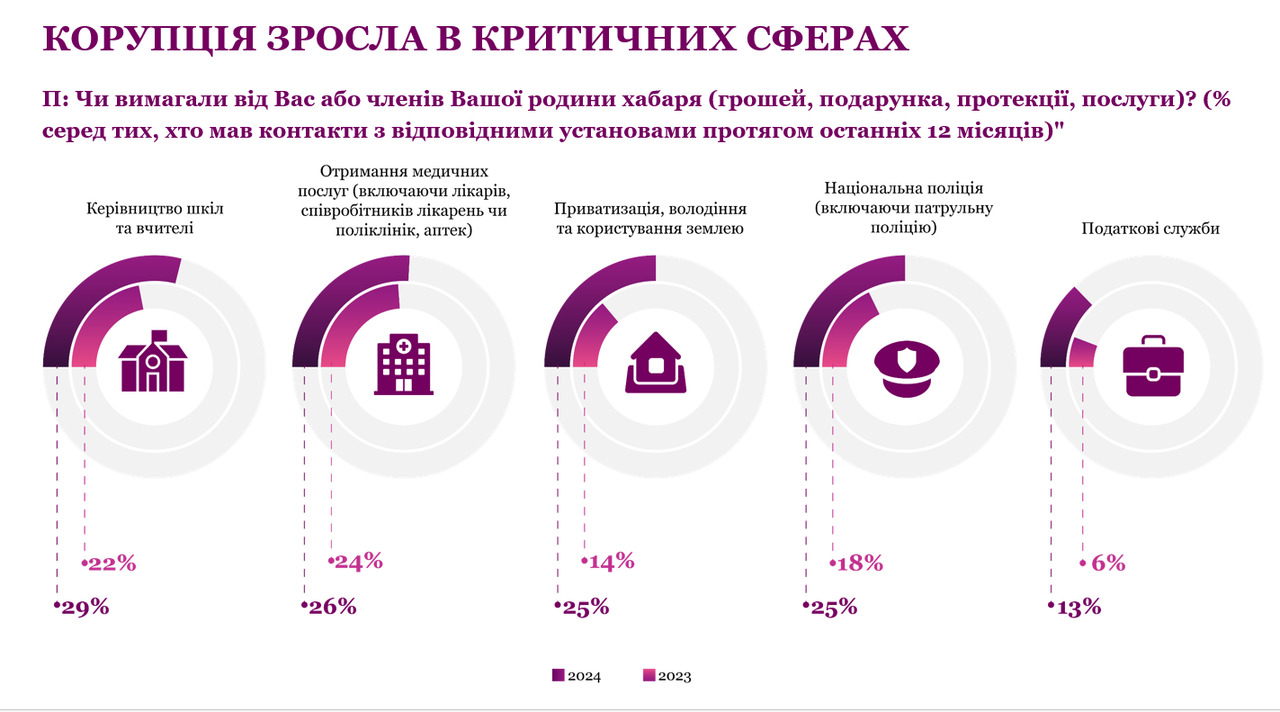 Крім того, українці стикалися з корупцією у критичних сферах.