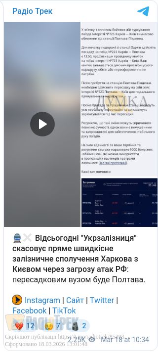 «Укрзалізниця» запровадила зупинку потягів і можливу евакуацію пасажирів у разі високого ризику обстрілів та загроз для інфраструктури.