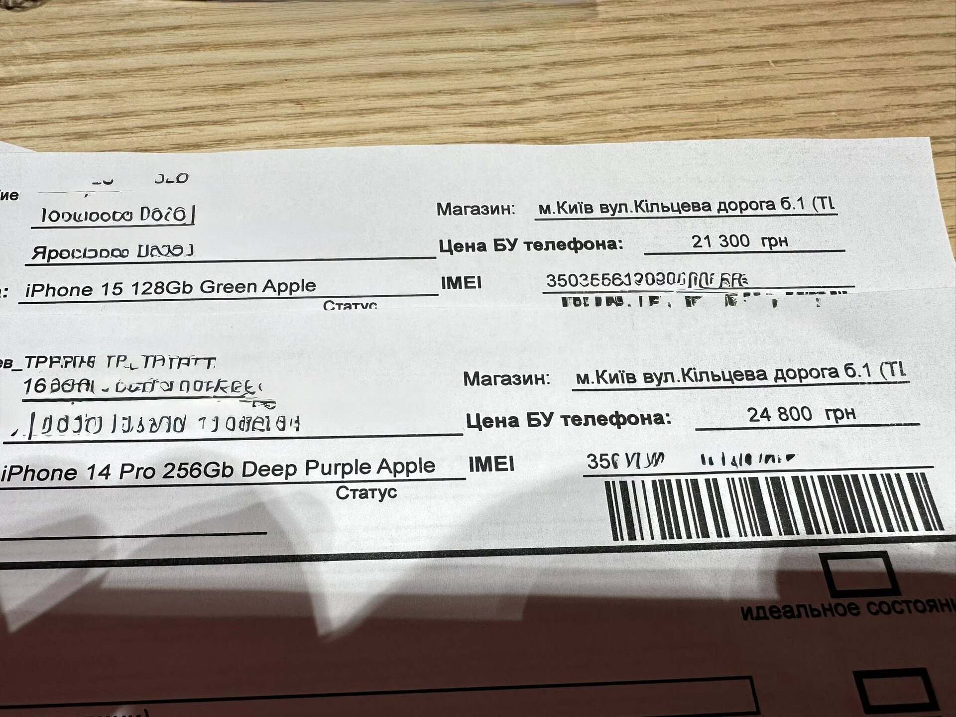 Шевченко для експерименту взяв iPhone 15 (128 ГБ) та iPhone 14 Pro (256 ГБ). Спершу він проаналізував, скільки грошей можна отримати на вторинному ринку, по типу платформ OLX: приблизно 18 000 грн за iPhone 15 і 19 000 грн за 14 Pro.