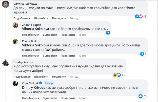 Заради справедливості, варто зауважити, що обговорювали батьки не лише спосіб справляння нужди, а й наводили чимало прикладів з українських шкіл, де туалети не гірші.