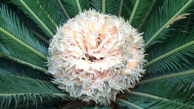 Зацвівши, обидва саговики одночасно виділили пилок і аромат, що нагадує запах гнилих тропічних фруктів. Оскільки було ще прохолодно і комах-запилювачів не виявилося, фахівці взяли ініціативу у свої руки, вручну перенісши пилок між рослинами. Після завершення запилення здавалось, що процес зупинився. Проте через місяць ботаніки помітили, що на жіночій рослині почала формуватися велика куля, яка протягом дев’яти місяців зростала до 40 см у діаметрі.