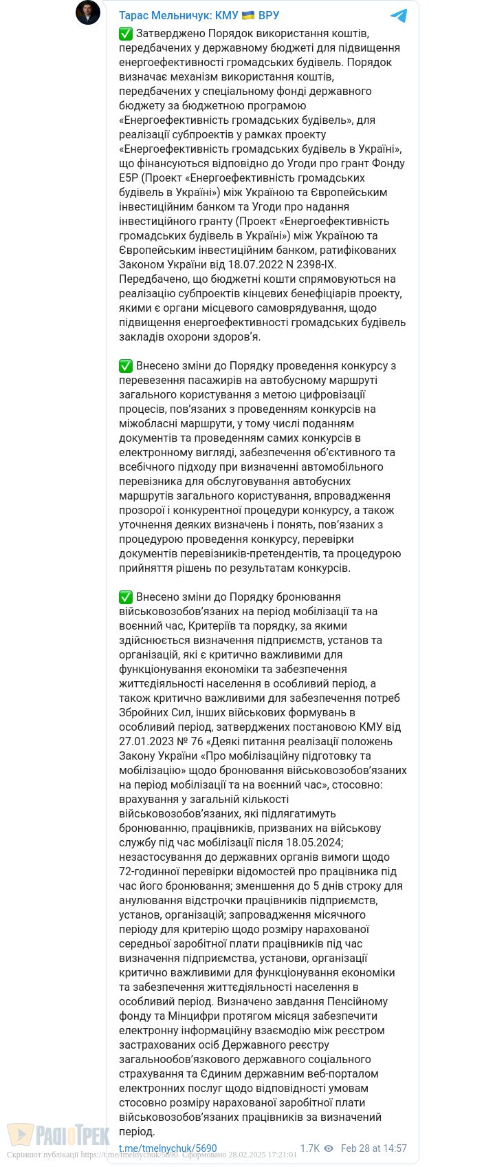 Також уряд доручив Пенсійному фонду та Мінцифрі протягом місяця налагодити електронний обмін даними між реєстром застрахованих осіб та Єдиним державним веб-порталом електронних послуг. Це має забезпечити відповідність умовам щодо рівня зарплат військовозобов'язаних працівників у визначений період.