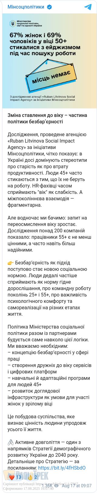 Тобто зміни стосуються не тільки людей 50+, а й молодших поколінь, адже від демографічної політики залежить якість життя кожного українця.
