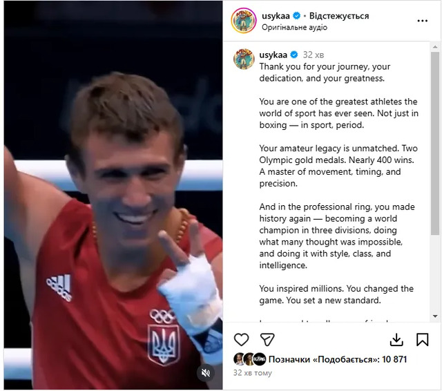 На завершення Усик наголосив на впливі Ломаченка на спорт та закрив можливість коментувати свій пост: