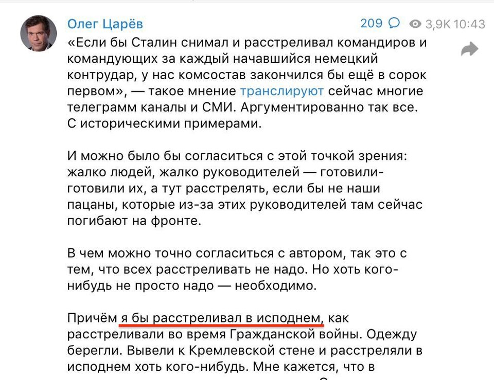 Цікаво, що при цьому, Царьов закликає убивати російських відповідальних осіб «роздягнутими», аби «зберегти одяг» розстріляних і віддати його іншим.