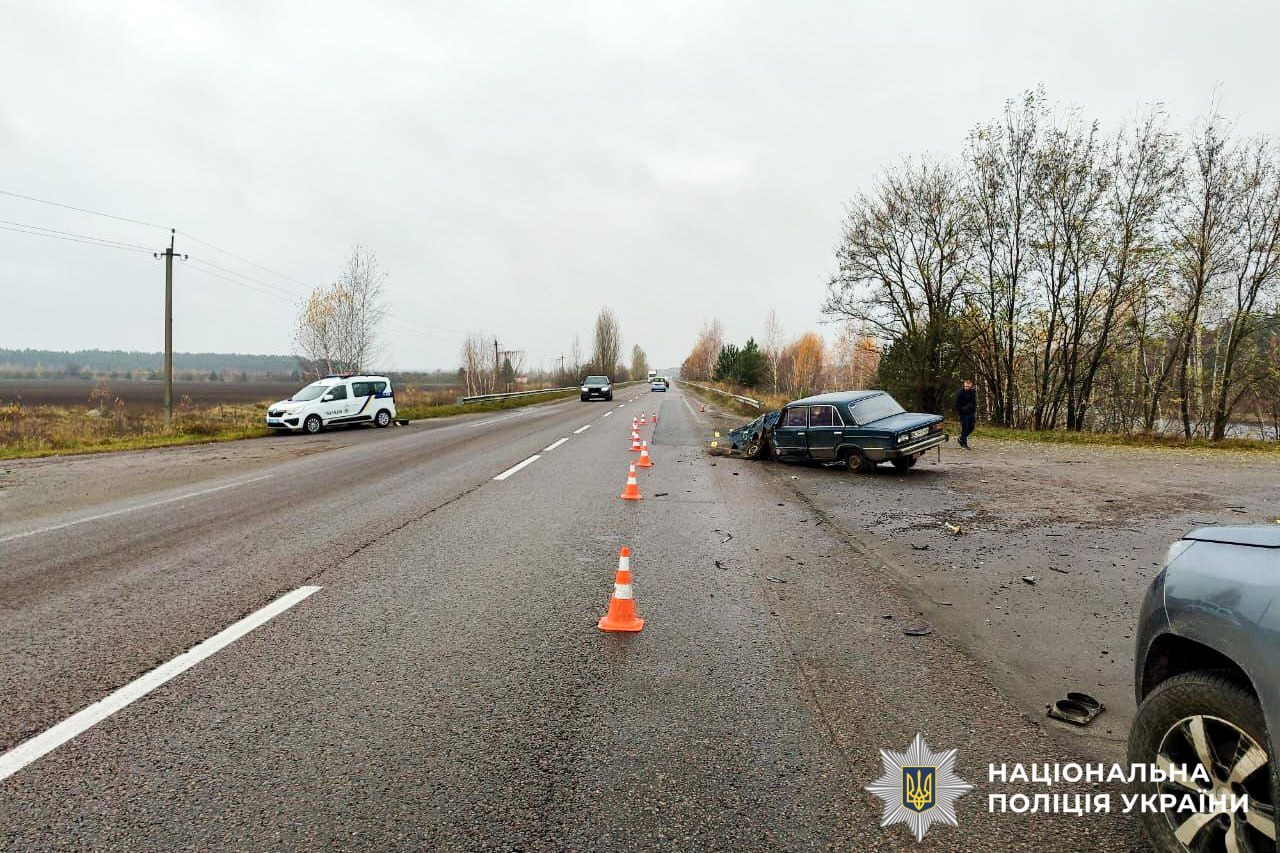 За попередніми даними, водій Volkswagen Touareg із Київщини під час обгону зіткнувся з ВАЗом, який саме повертав ліворуч. Від удару позашляховик вилетів у кювет.