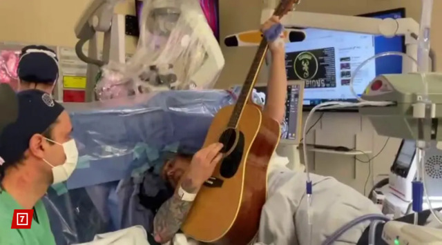 44-річний чоловік, на ім’я Пол, грав на гітарі, поки лікарі видаляли йому пухлину мозку розміром із ківі.