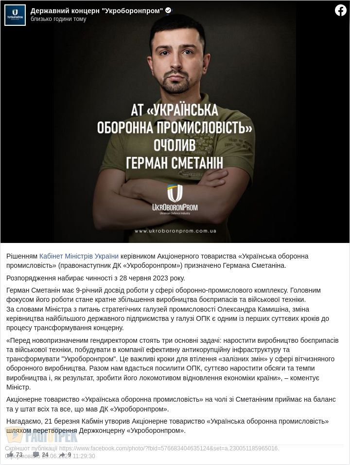 Новим гендиректором ДП «Укроборонпром» став Герман Сметанін. Йому вже дали перші завдання.