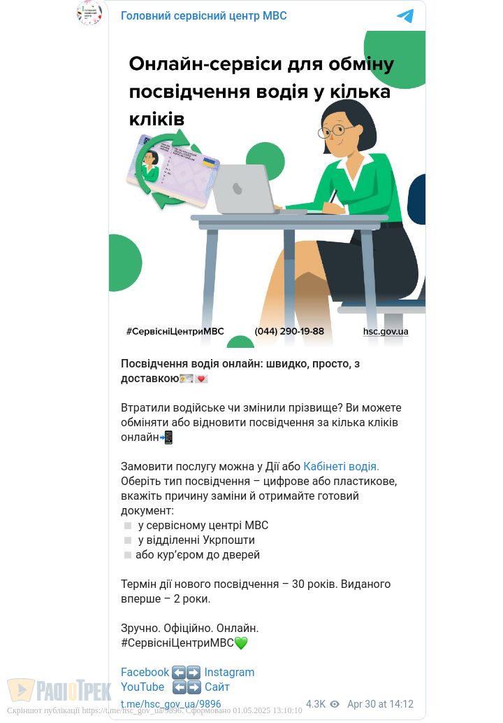 - особисто у найближчому сервісному центрі МВС;