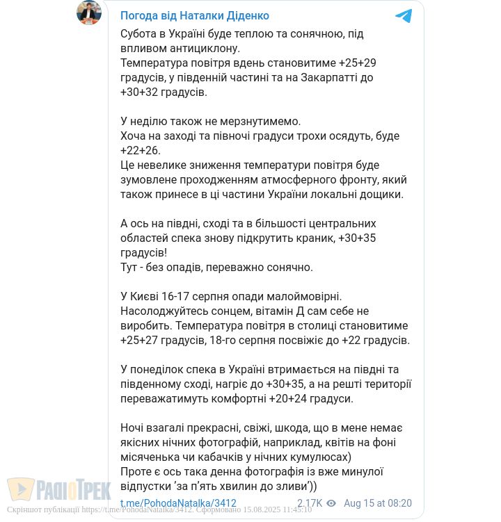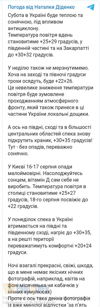 Ночі взагалі прекрасні, свіжі, – зауважила синоптик.