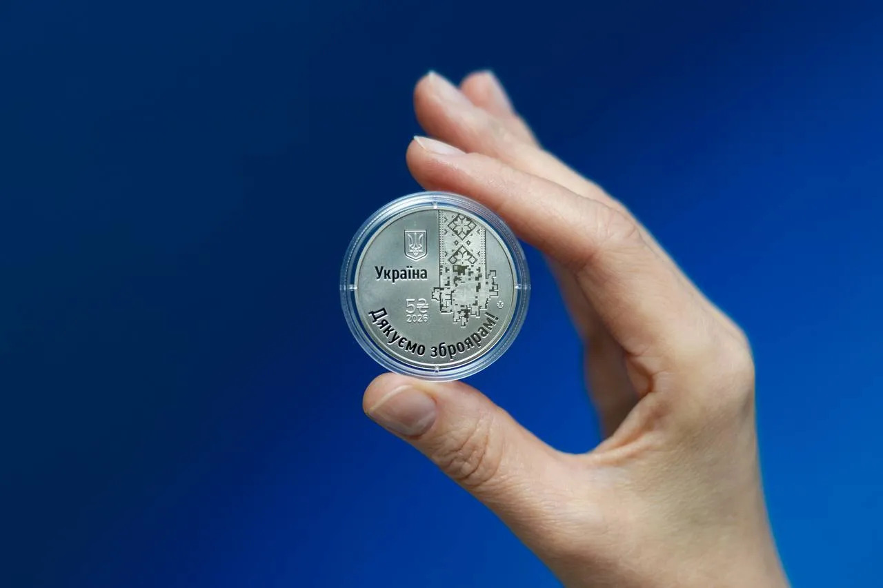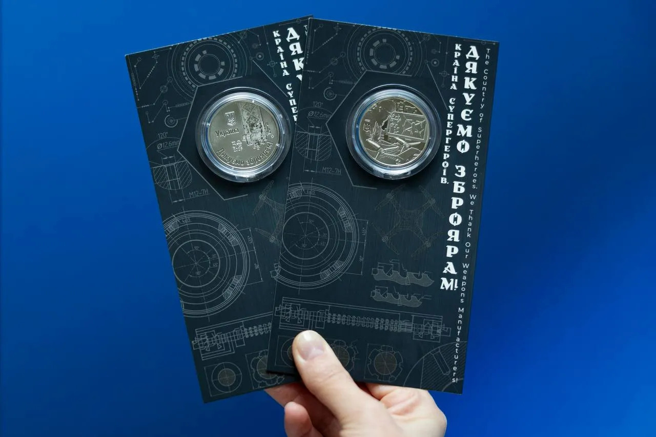 Національний банк України презентував нову пам’ятну монету номіналом 5 гривень, присвячену працівникам оборонно-промислового комплексу. Вона отримала назву «Країна героїв. Дякуємо зброярам!».