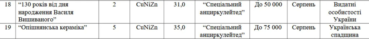 У серпні в Україні мають з'явитися дві нові пам'ятні монети. Вони будуть присвячені традиційній українській кераміці з смт. Опішня на Полтавщині, а також полковнику Легіону Українських січових стрільців та армії УНР Василю Вишиваному.