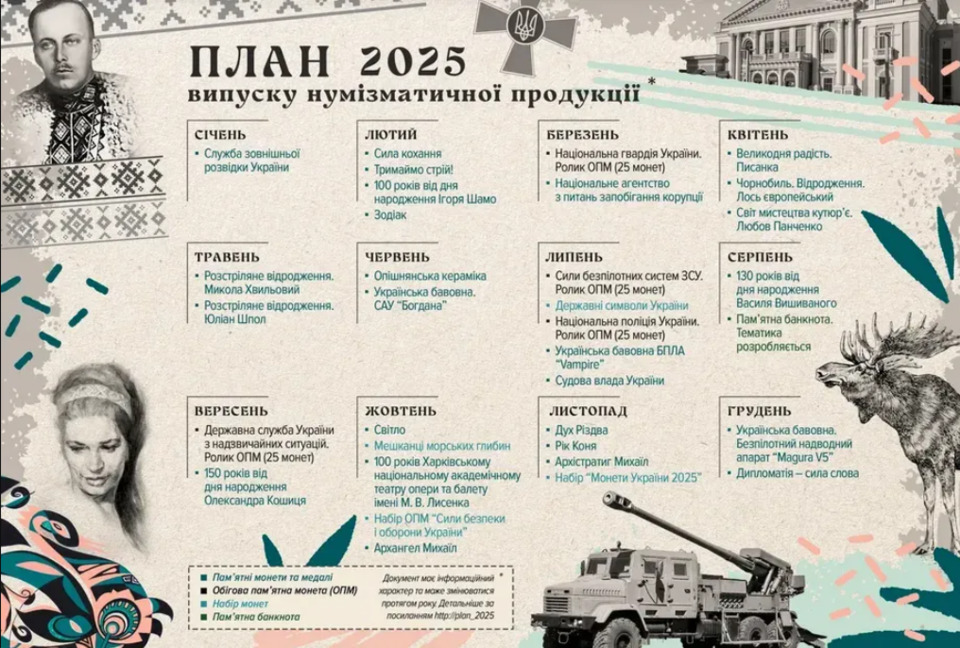 - вони увійдуть до серій «Українська спадщина» та «Збройні сили України».