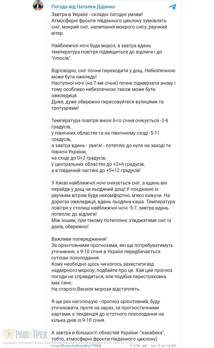 Разом з тим Наталка Діденко додала, що сильне похолодання – прогноз орієнтовний та потребуватиме уточнення.